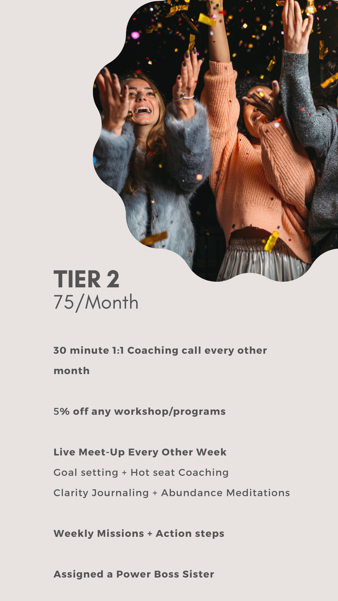 The Power Boss Movement is a movement where Boss Babes come together, get clear on goals, level up in their career life, support one another + hold each other accountable along with the support + group coaching with your coach, ME!